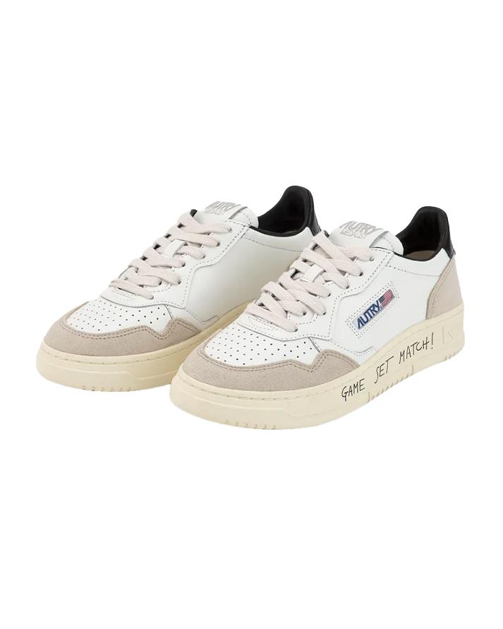 La Medalist Autry reinterpreta lo stile del tennis anni 80, fondendo vibe heritage e un'estetica dal taglio contemporaneo. Caratterizzata da un design essenziale, è la perfetta sneaker quotidiana grazie al suo mood timeless e versatile, garantisce comfort quotidiano, unendo stile intramontabile e funzionalità.Le "Game Set Match!" sono l'accessorio immancabile nel guardaroba dei veri tennis lovers.Questa sneaker da donna è realizzata con tomaia in pelle di colore bianco, traforata sulla punta, ed è rifinita con inserti in morbido suede sui lati e talloncino logato posteriore nero per un tocco di colore. Focus sulla suola in gomma, personalizzata con il lettering "Game Set Match!" in stile graffiti.